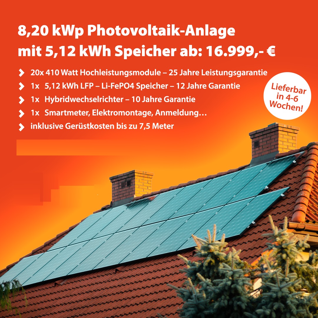 *Diese Pakete enthalten: Inkl. Montage, Gerüst, Elektroanschluss, Anmeldung und Inbetriebnahme, sowie Schulung des Kunden. Aktuell können alle Anlagen und Komponenten ohne 19% MwSt. gekauft werden. Preise sind Nettopreise. *